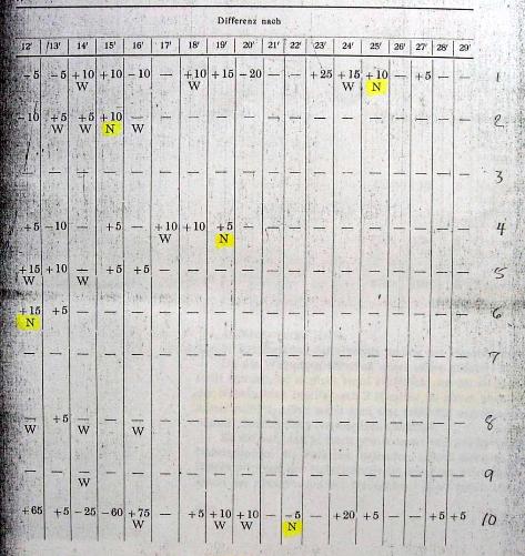 | To accommodate the 34-minute time span of the table it was presented in three sections, which are reproduced below. Most important perhaps is illustration of the variable time span for continuing pulsation of the cord (Nabelschnur), designated by N (and highlighted by me). The W designates Wehe (uterine contractions), showing their association with additional gains in weight, which diminish after pulsations of the cord cease - pulsations of the cord, from the infant heart, are the primary signal for continuing need of placental circulation. |